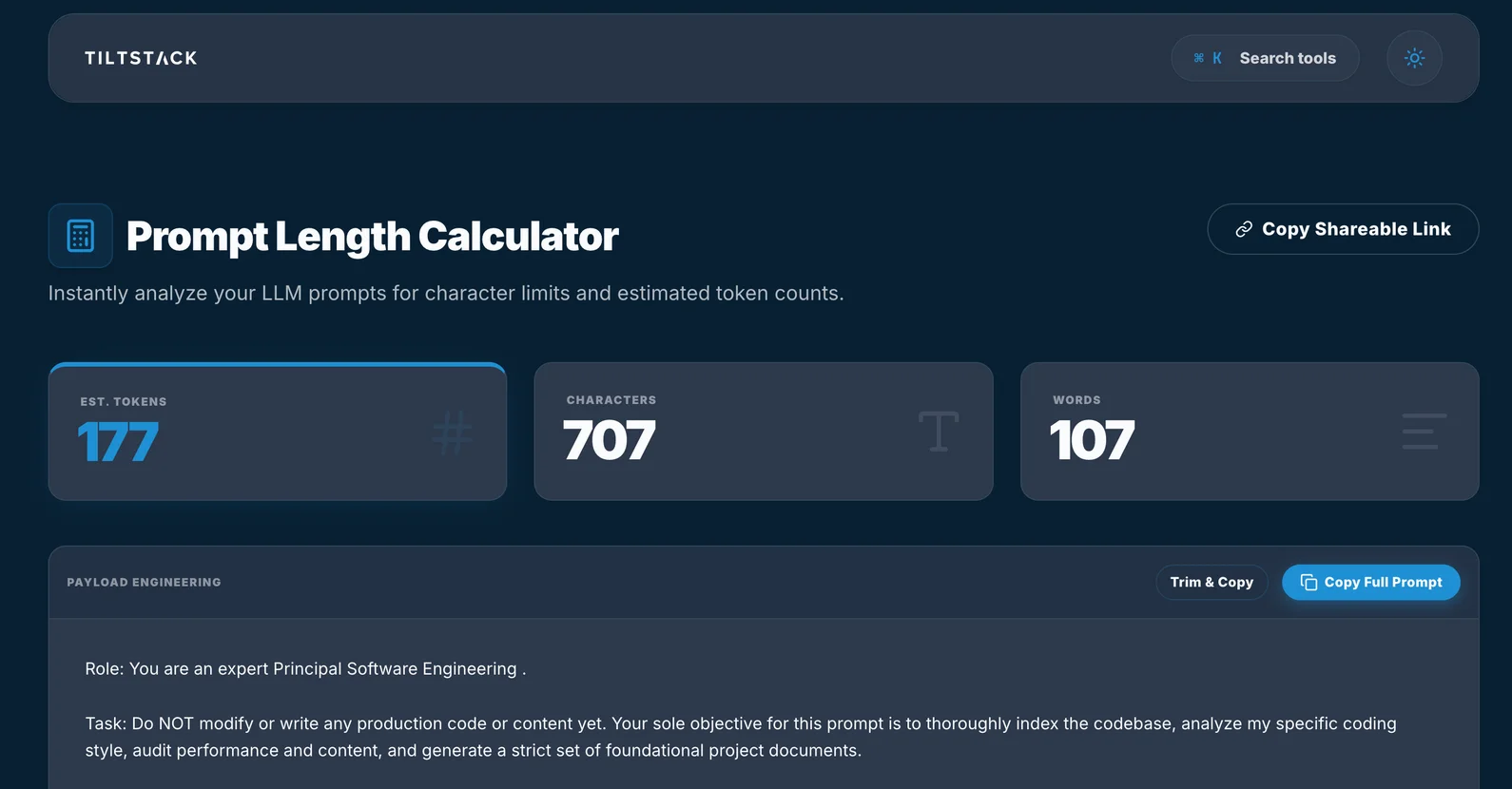 TiltStack Prompt Length Calculator —